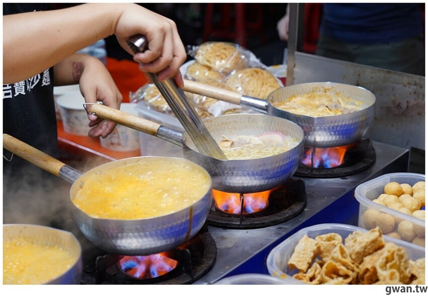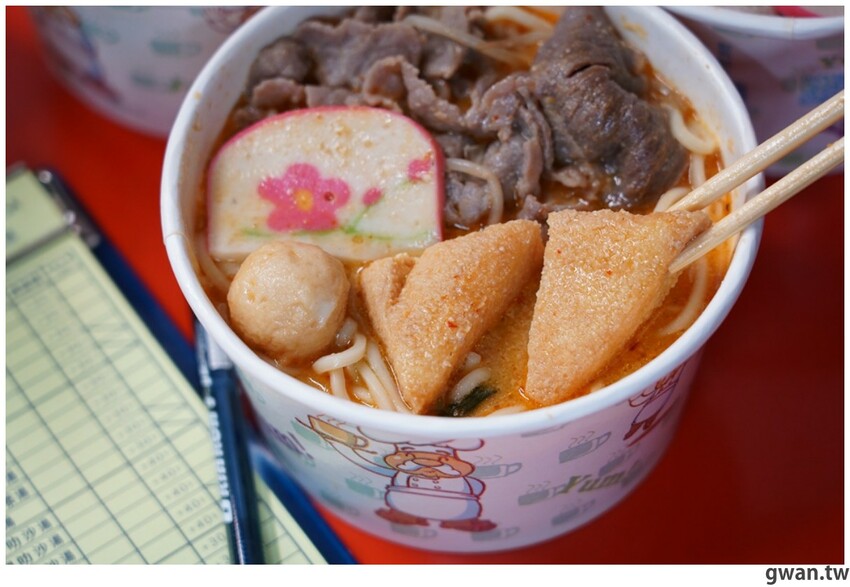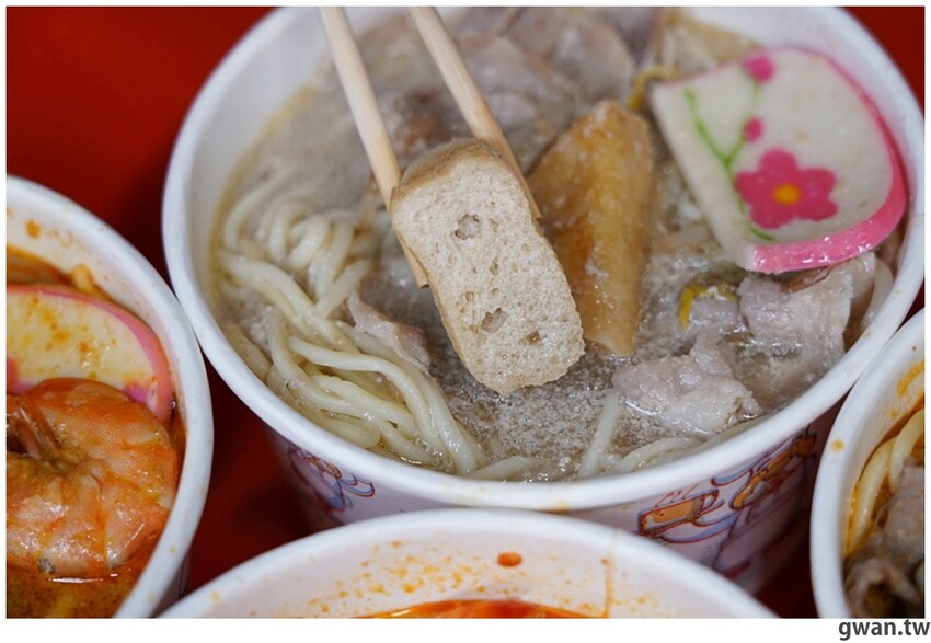 每一碗的基本配料都有魚板、魚蛋、油豆腐、豆皮,還會加九層塔提香