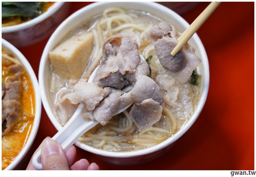 不管是肉片或配料沾附湯頭都很夠味,豬肉口感也很嫩