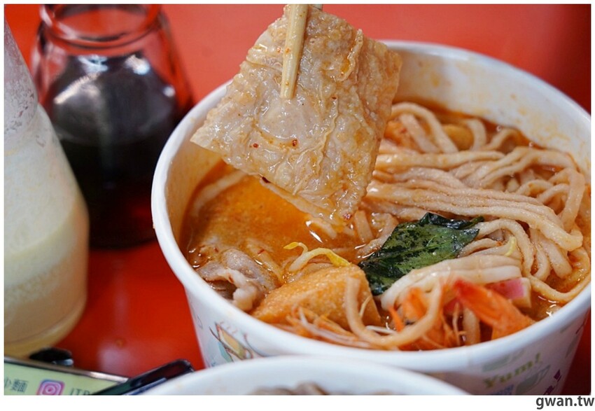 這碗我們搭配黃麵,雖然跟意麵比起來沒那麼吸湯,但吃起來比較有Q度