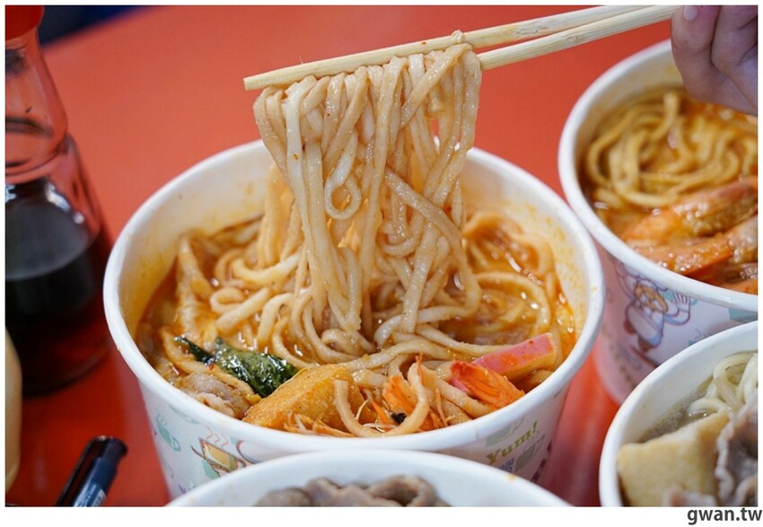起鍋前再放入麵條,有黃麵跟意麵可選,我覺得份量還蠻多的,一碗就能吃很飽,除非你食量很大,否則應該不太需要額外加麵