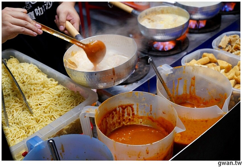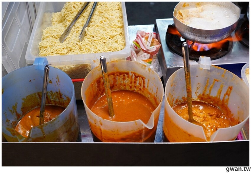 這幾桶是店家的秘製醬料,不同口味會加不同的醬,想要加濃也可以,老闆說這樣口味會更道地