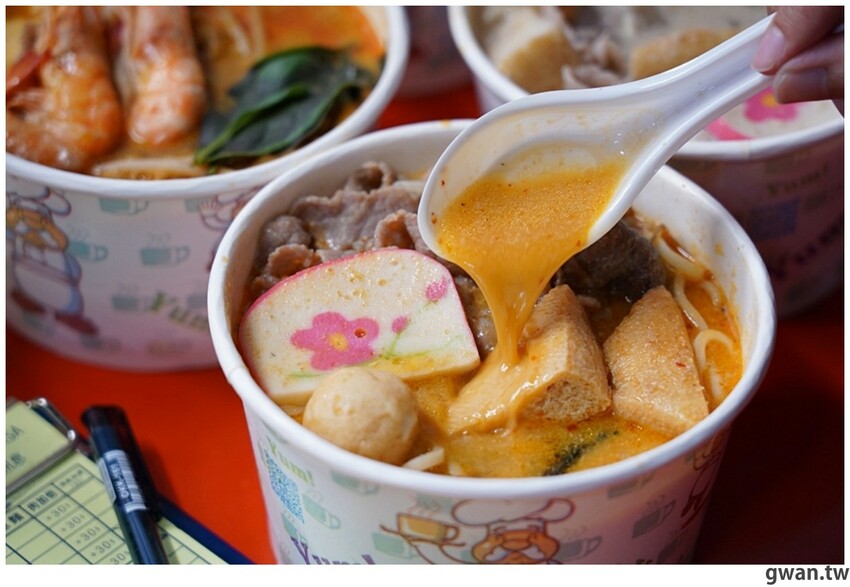 吉寶叻沙麵11月才剛入駐大慶夜市,就在中間用餐廣場那一區,黃色旗子蠻顯眼的!那天去逛夜市還發現一個超新奇的棉花糖自動販賣機,你們可以一起收藏起來