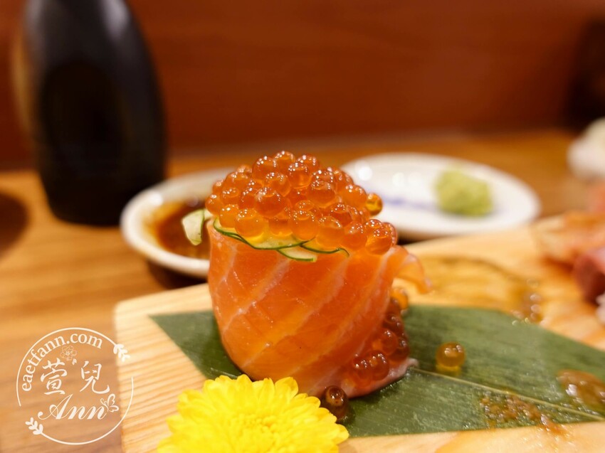 吃到鮭魚生魚片的鮮甜與滿滿鮭魚卵在口中爆漿
