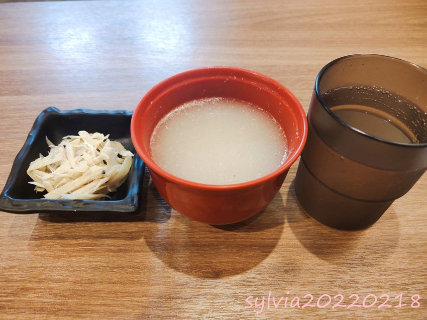 ▼店員請我吃的牛蒡絲小菜。雞白湯是好喝的,但就是小嚐一碗即可。