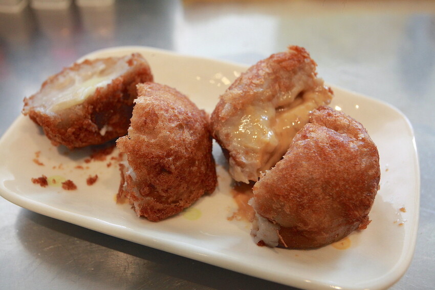 經過油炸裡面會融化的食材會爆漿,這芋頭很濃郁綿密微甜真好吃