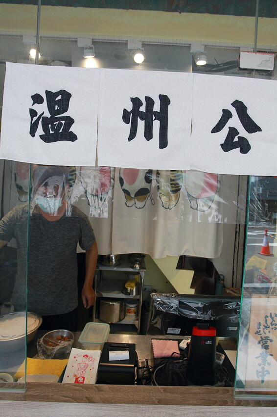 這店面有掛上有毛筆字布簾充滿日式風格。