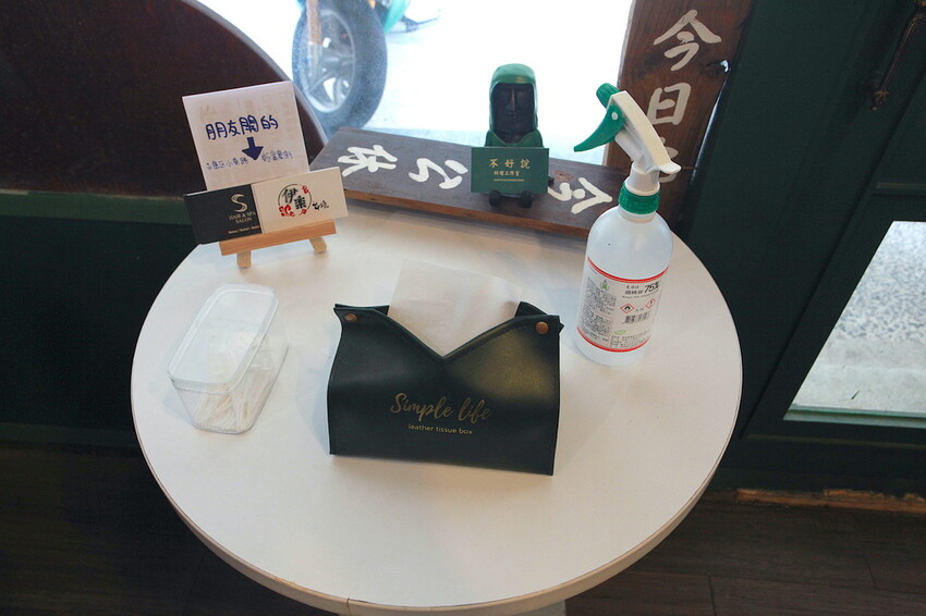 大門旁有放置低矮桌子有放置名片,這些名片是老闆朋友開的店。
