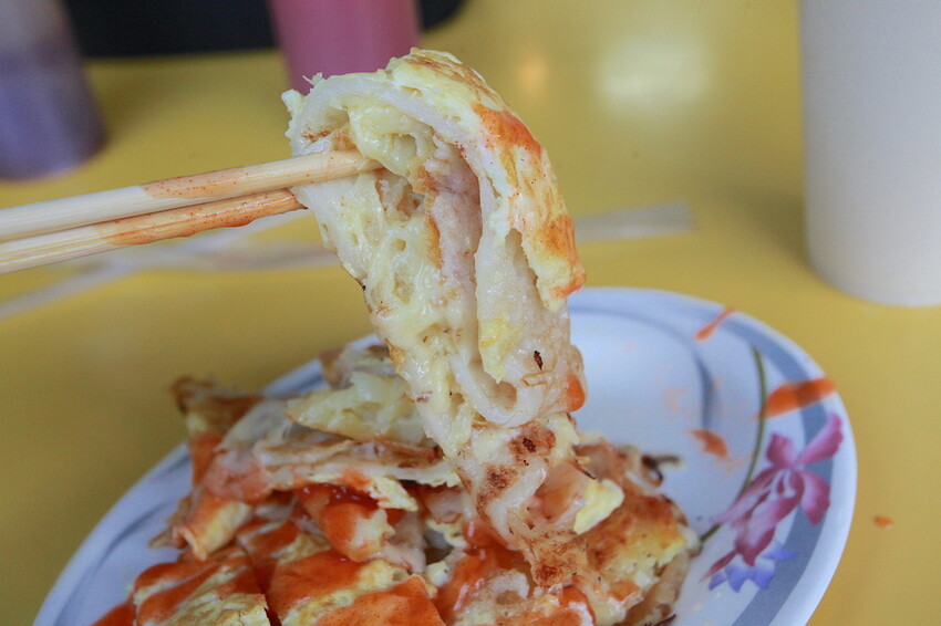 這蛋餅小高直接淋上番茄醬來提味與拍照。