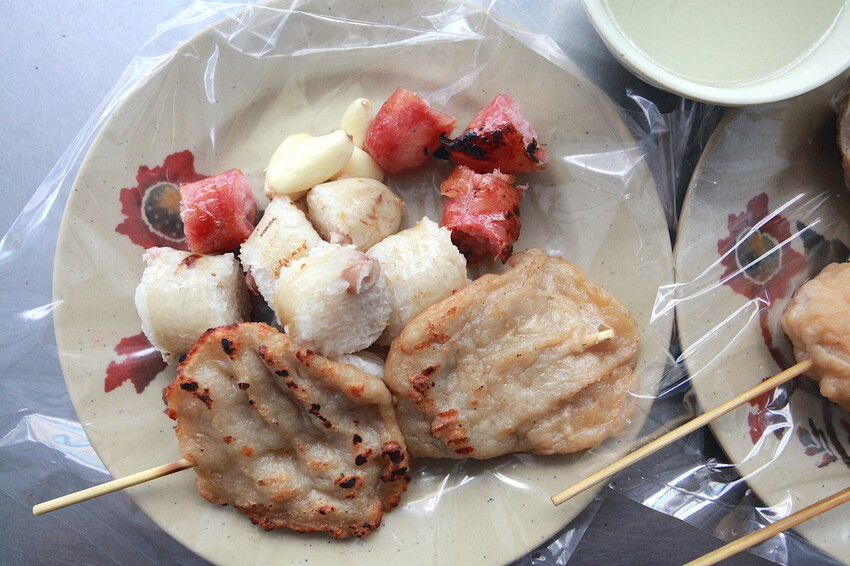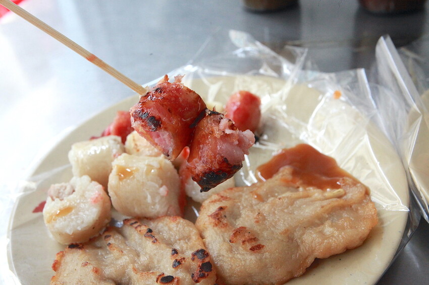 這烤大腸焦味稍顯不足卻很好吃,烤香腸焦香肥瘦適中非常好吃,尤其是這烤手工黑輪軟Q程度讓我驚艷