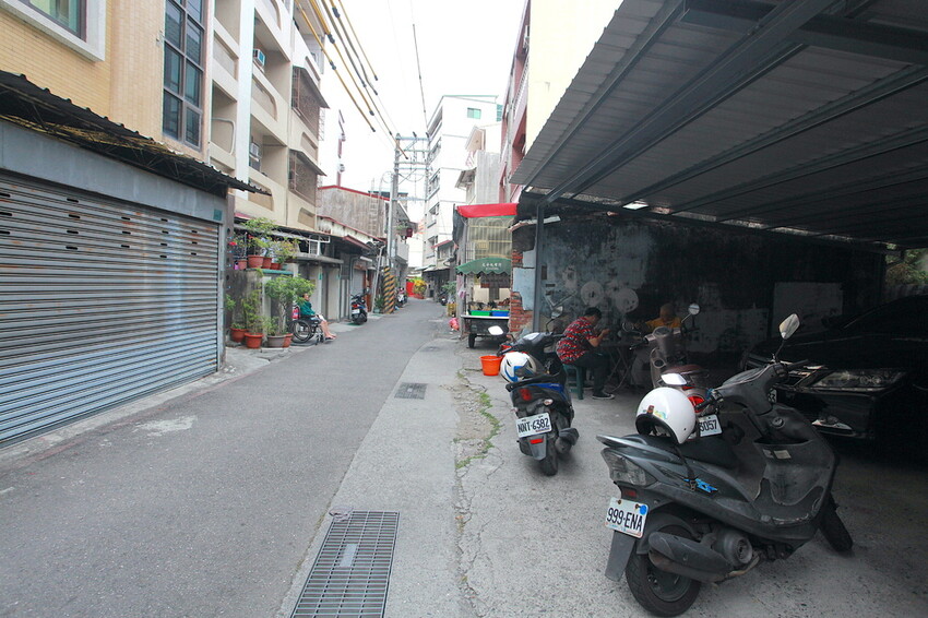 老攤車就停放在居家隔壁鐵皮屋前面,也承租一個停車位放置桌椅供內用。