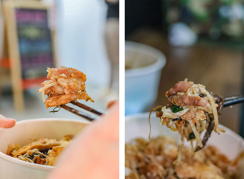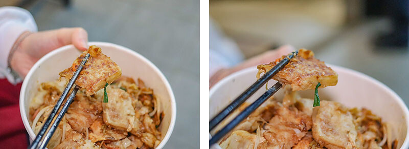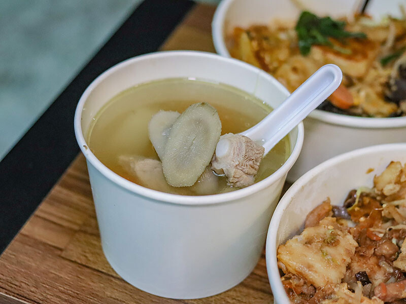 炒粿搭配牛蒡湯其實還滿特別,牛蒡味道足但不是太過頭的那種,和口味稍重的角角或是炒麵喝著解膩也多些清爽;這湯品看得出來也是不惜成本,有豐富的肉塊和大片牛蒡燉煮相當划算;現在搭配新開幕的活動只要在google評論就送你一碗喔!