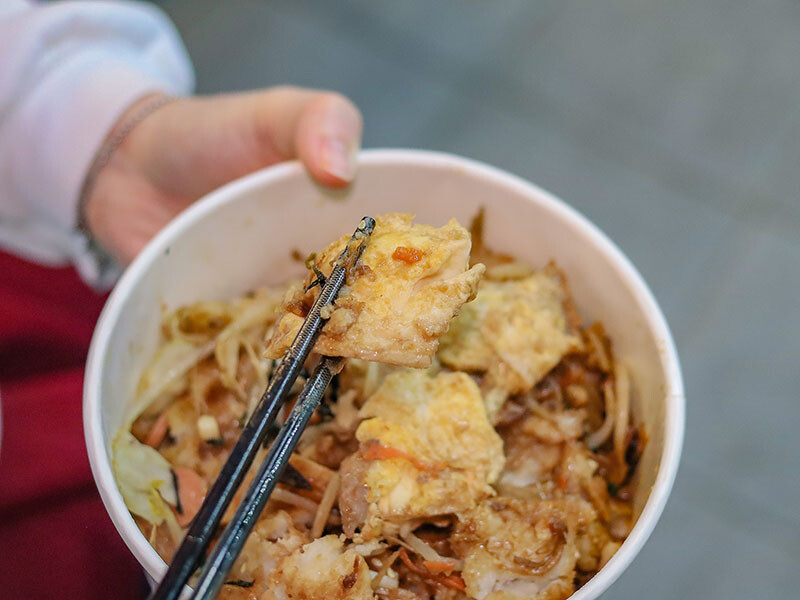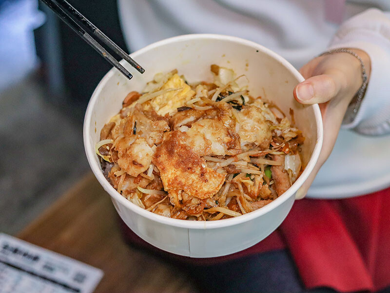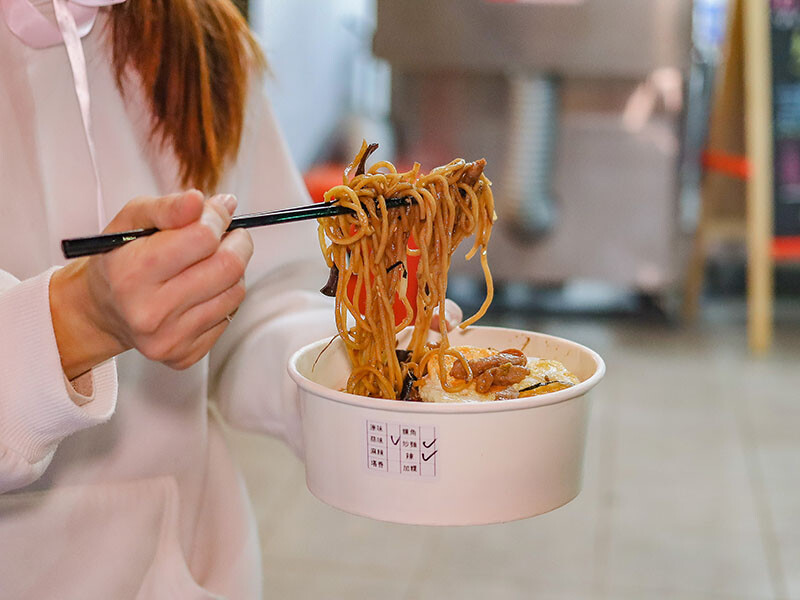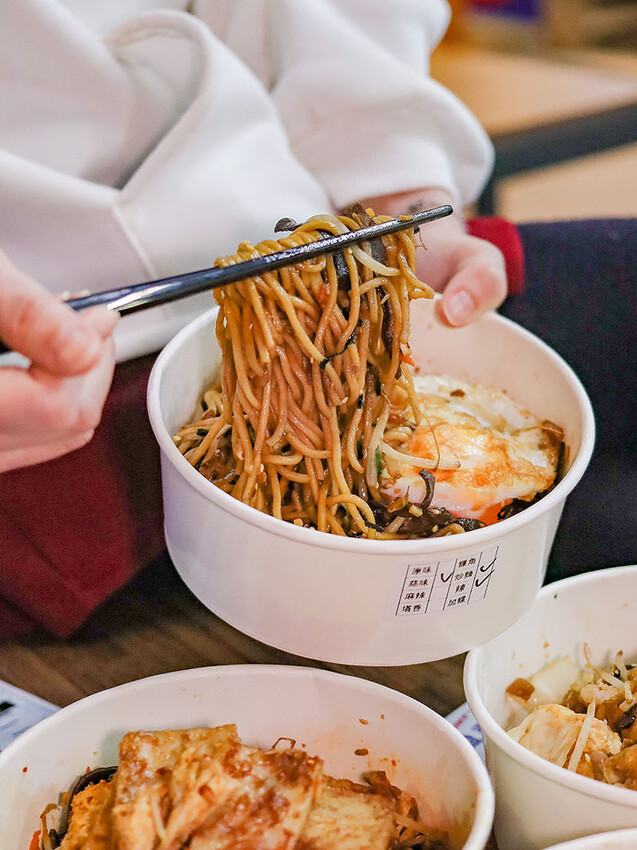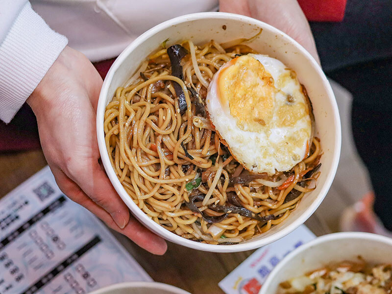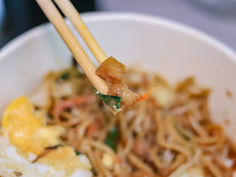 炒麵我選擇蒜香,口味上味道比較濃郁,喜歡重口味的朋友會相當喜歡;翻開蓋子就有濃郁香氣,醬汁在不斷翻炒下均勻包裹麵體;炒麵搭配的是荷包蛋,熟度約在八、九分左右,有一點蛋液流出吃起來更香~