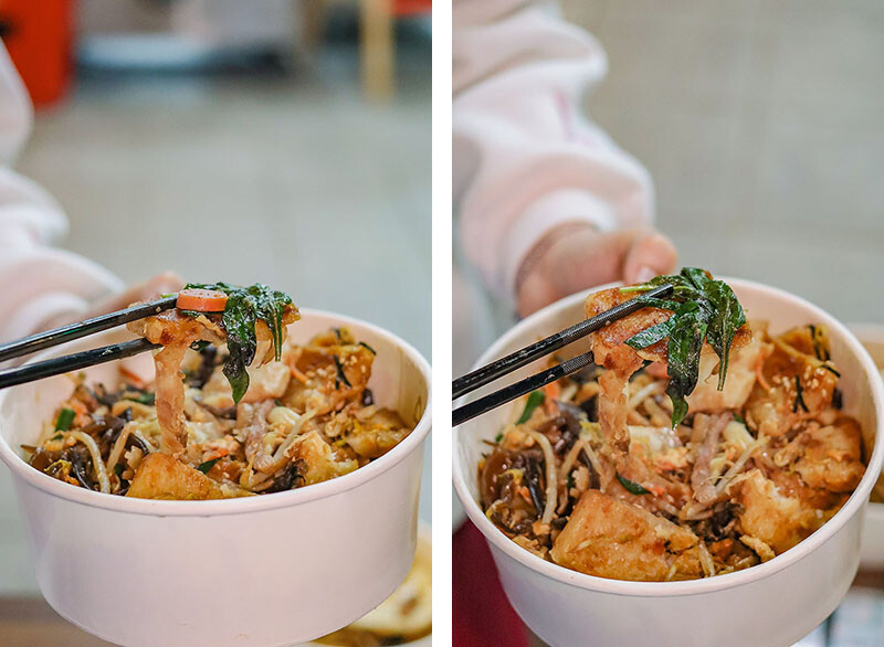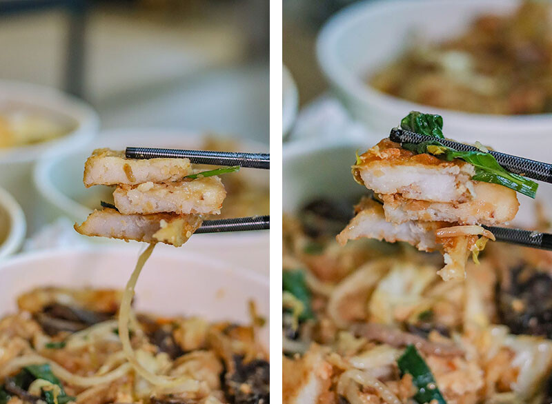 額外的肉絲和配料搭配,角角類都有搭配一顆炒鴨蛋,吃起來有更濃郁的蛋香。