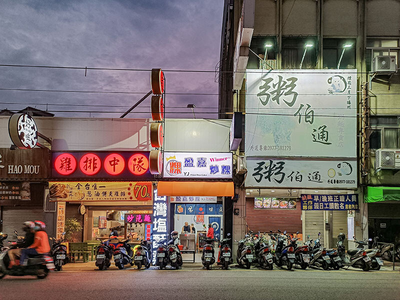 盈嘉炒粿在南大路靠近東南街的這一端,可算是鄰近後站的小吃街,下午時刻開始營業到凌晨,涵蓋下午茶、晚餐和消夜時段;這裡摩托車當然就是路邊停車啦~開車的話建議找個空曠點的地方暫停,以不妨礙交通順暢為主。