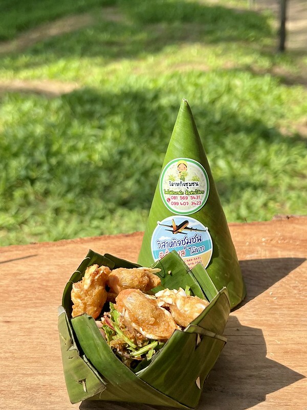 用葉子做的容器中裡頭放著的是在地特色美食,