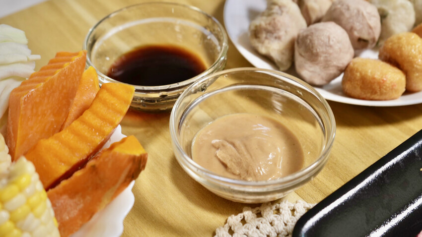 ▻ 醬料當然不能少~醬料可是火鍋的重點之一,橙醋醬、芝麻醬兩種都要各沾一點,清爽中帶有芝麻香氣~好讚!