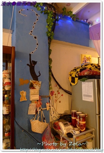 ↑吧台上擺著各式各樣的擺飾,杯子等等, 還有貓兒們的水及飼料, 店貓們如果餓了可以自行處理.
