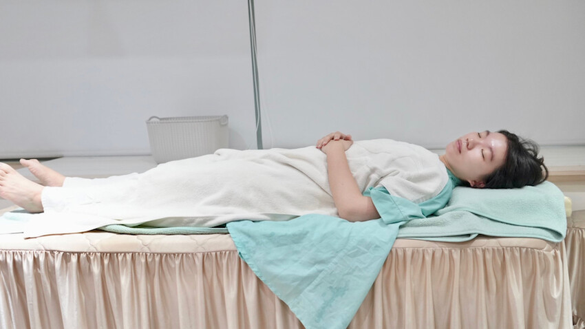 ▻ 循氣蒸結束,可以躺在旁邊的美容床休息10分鐘,讓汗排乾淨,做完循氣蒸真的很好睡,我躺上去就一秒睡著了~