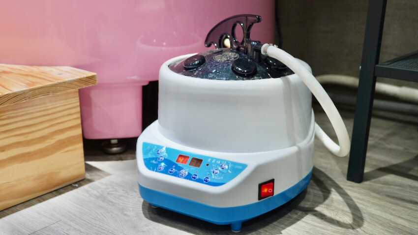 每一台儀器旁邊都有一個製造蒸氣加熱的儀器,釋放負離子的同時,溫熱的循氣蒸會幫助流汗,很適合平時都在冷氣房的女孩,可以放鬆壓力、深層排汗。
