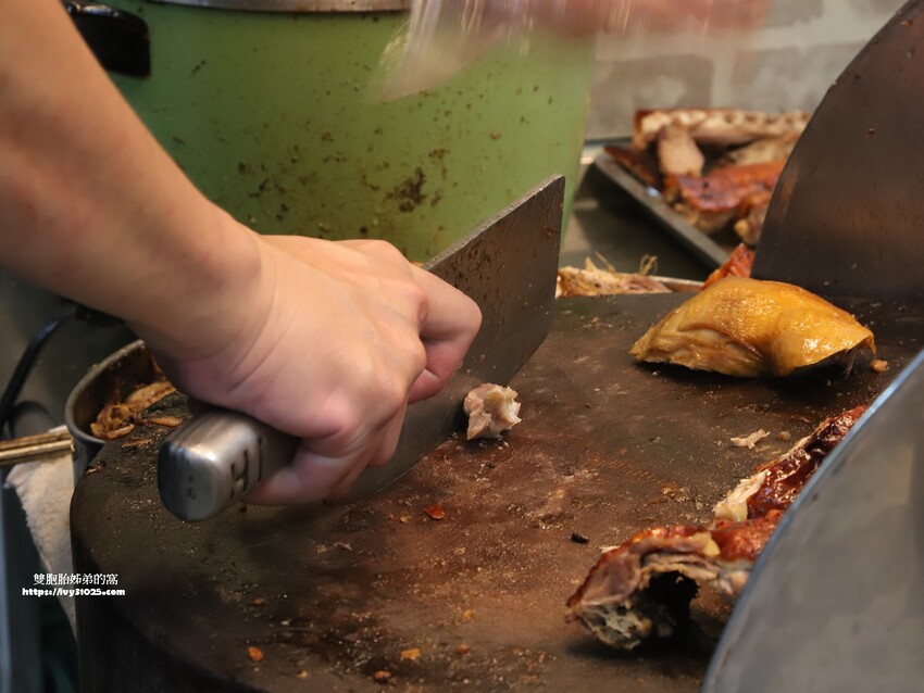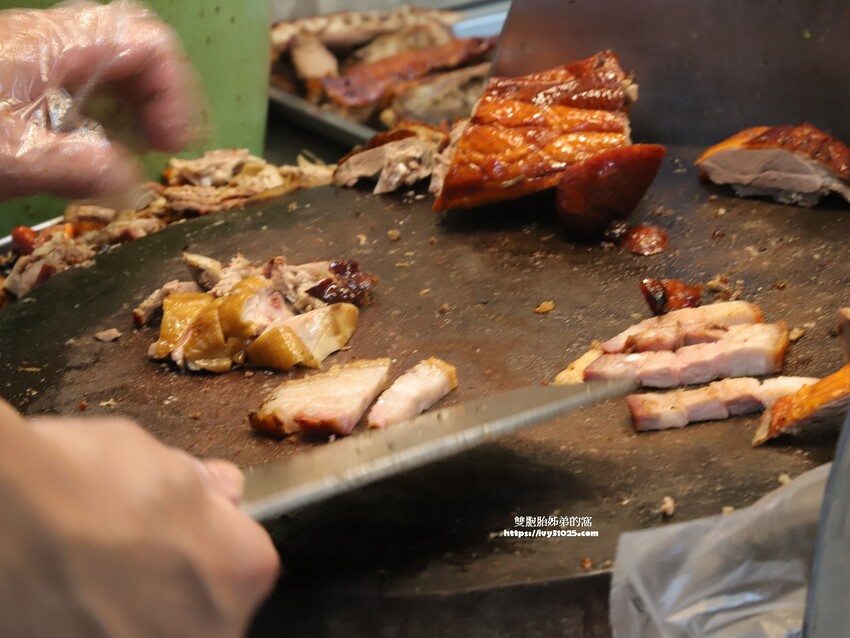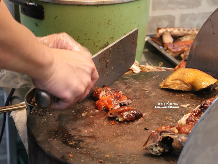 很俐落的一刀刀的將烤鴨或是燒肉切下來。