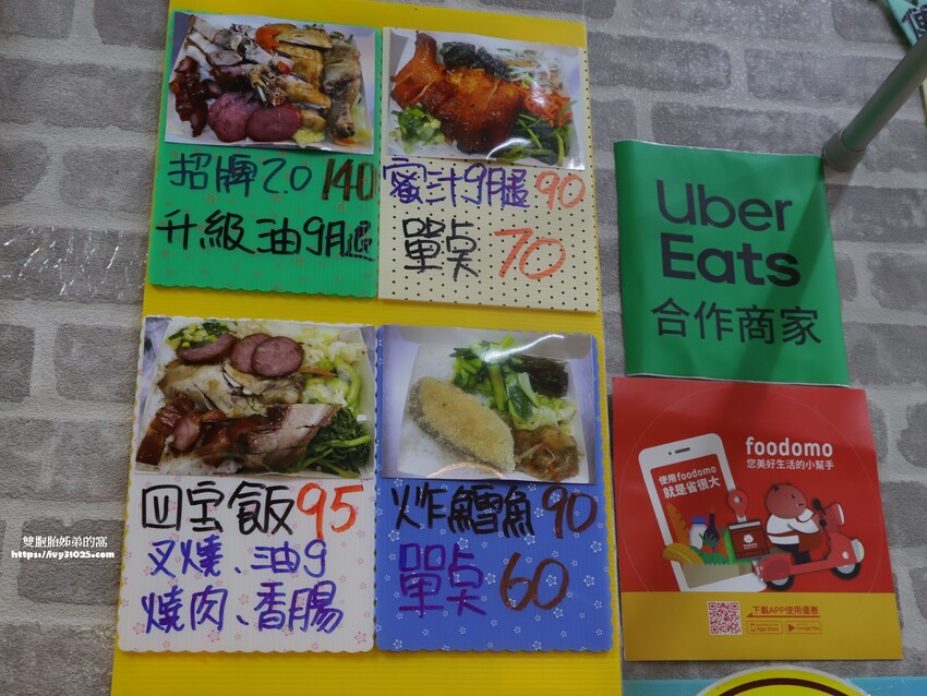也可以叫外送平台幫你直接送到家,當然今天想要吃豐盛一點,也可點三寶飯,古記燒臘快餐是免開發發票的悠。