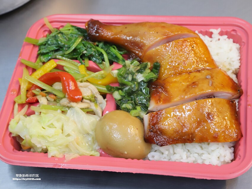 我也來外帶四寶飯+蜜汁g腿飯回家。