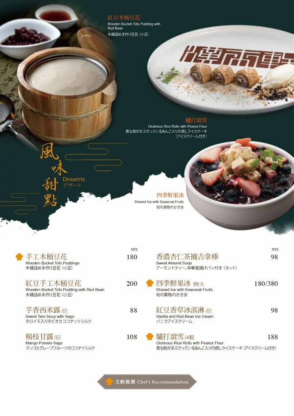 飯後甜點除了熔岩黑金包外,還有熱騰騰的紅豆木桶豆花,豆花相當綿密,吃起來帶有迷人的豆香味,旁邊附上甜而不膩的蜜紅豆及薑汁糖漿可以搭配享用,冷冷天氣來碗熱熱的豆花,暖心又暖胃