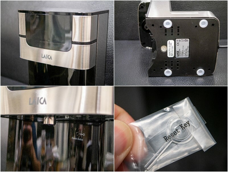 飲用水出水孔的位置位於主機前方,以及出水燈光顯示,再出水孔旁有一個重置開關,而主機底部也有一個排水孔