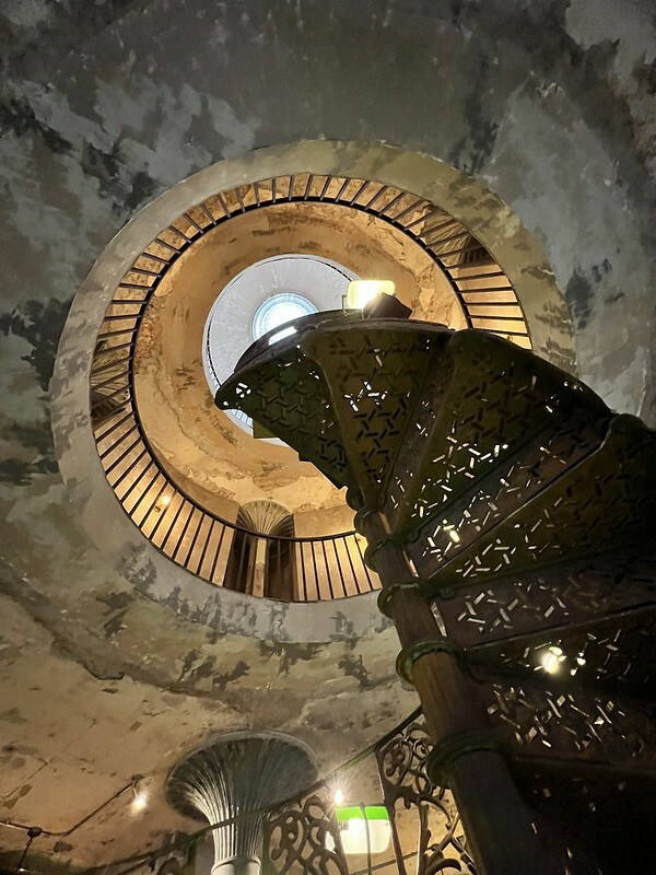 保留內部結構的柱子,中間的迴旋梯設計是網美們的最愛,