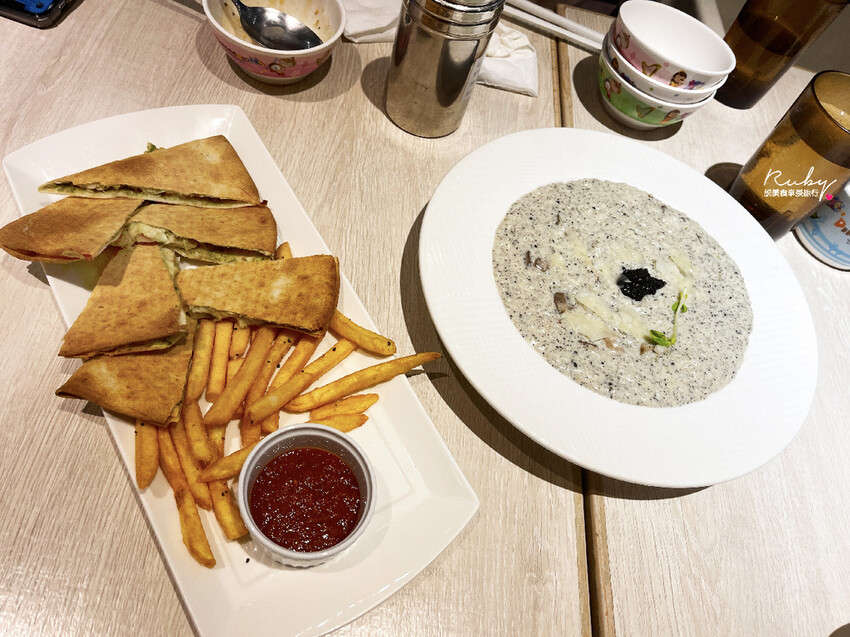 燉飯有請店家稍微煮爛一點,讓小朋友比較好入口,野菇的味道很重,加上松露本身帶的鹹味剛剛好。