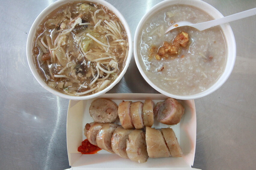 小高點大腸80元、關廟魯麵小碗60元與芋香竹筍粥小碗60元。