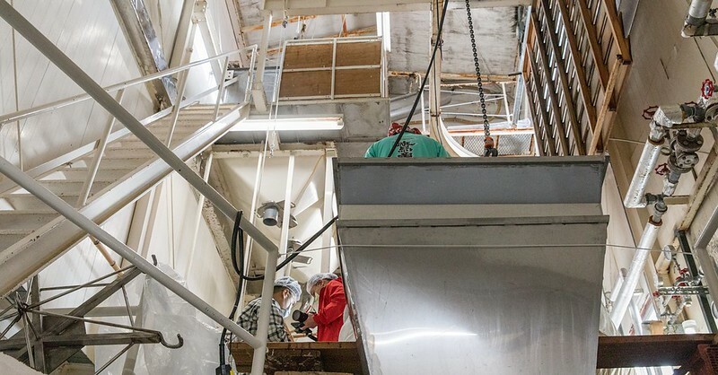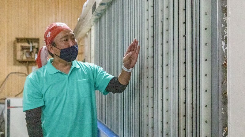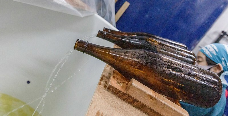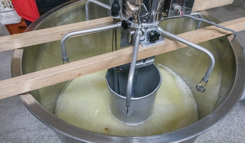這是最後壓榨的流程,壓完後取出一片一片的白色渣渣,便是我們熟知的酒泊,但透過這個比較現代化的機器,除了可以節省人力外,壓榨出的酒量也比較多,剩下的酒粕更存然,吃起來口感很像起司,也常被拿來做成餅乾、甜點、咖哩、咖啡,甚至是化妝品。