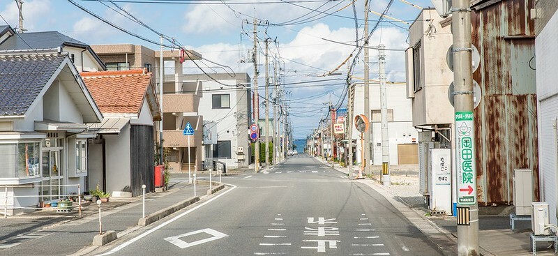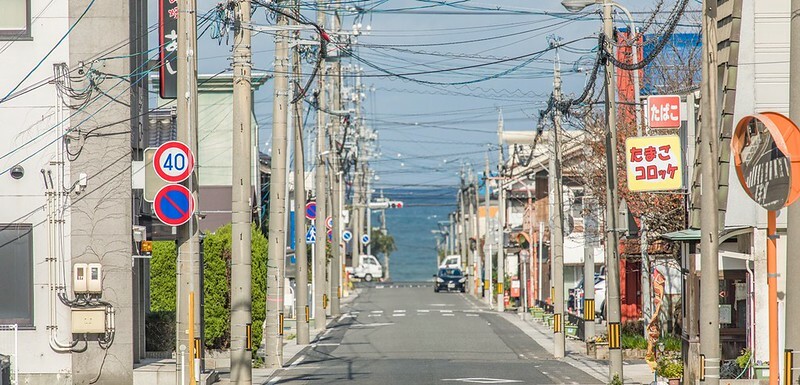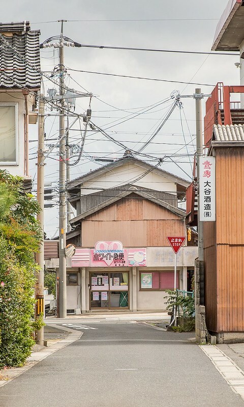 咚咚咚之後看到的是有一點消條的站前商店街和偶爾快速駛過的汽車,最後直達山陰日本海。這一刻,我彷彿聽到手指邊的快門聲,也同樣聽到一兩公里外的海浪聲。之不過,另一側的酒香正騷擾著我肚裡的酒蟲......。