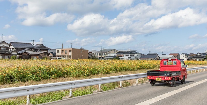 出了浦安站往南走,是一片油黃的田地,查了一下才知是鳥取著名的「琴浦ひまわり畑」(向日葵)。