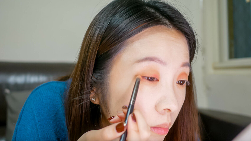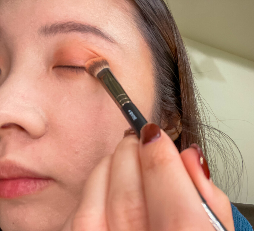 可先用淺色作暈染,再用深色疊加在眼尾處