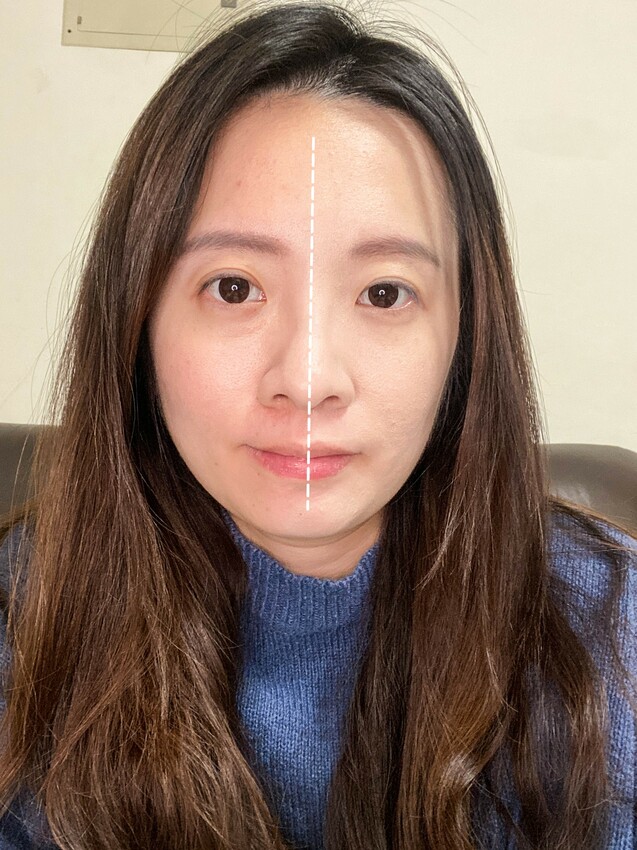 給大家看差異,右半邊臉是有上妝,左半邊是沒有的