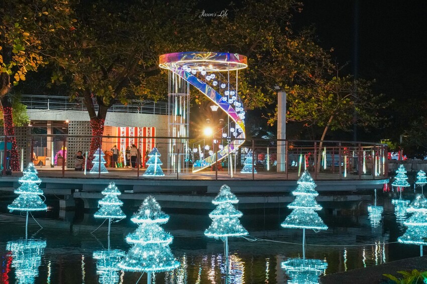 今年公園內的湖面上增加了許多小小聖誕裝飾