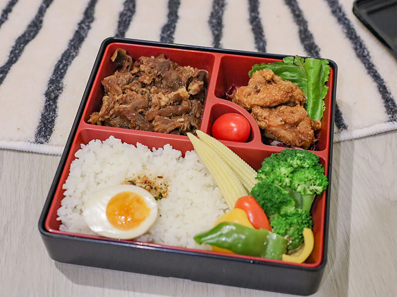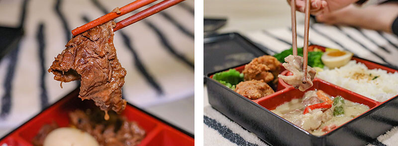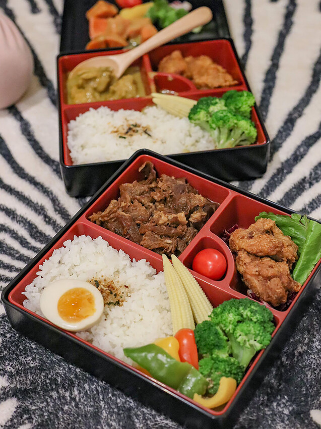 果然葉子的加持菜色相當不錯,每個餐盒都有一份唐揚雞再加上選擇的主食,可以說是雙主餐,南洋薑汁豬的香氣足,稍微的辛感是調味醬中的薑汁,小草喜歡的咖哩飯味道也不錯,一旁的唐揚雞外皮已經有點涼,咬下仍是溫熱多汁;紅燒牛腩我相當推薦,牛肉燉煮夠爛而且多有半筋半肉的部位,想到在山裡還能有Q彈的牛筋吃就覺得很爽快,蔬菜則是以彩椒、玉米筍等搭配。