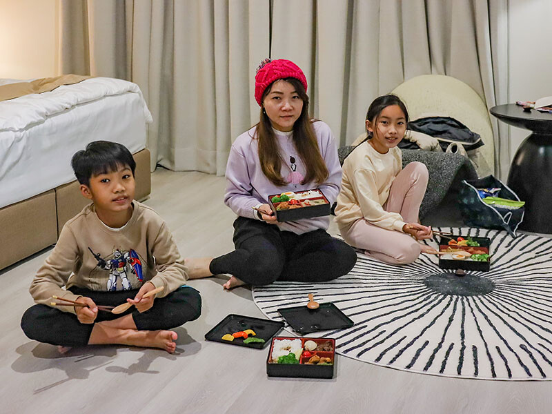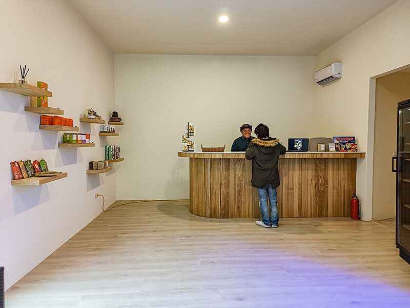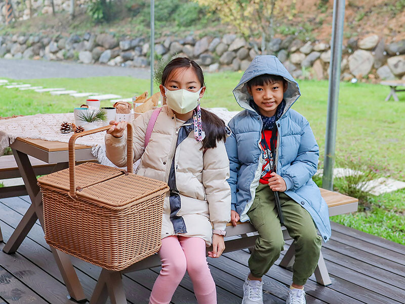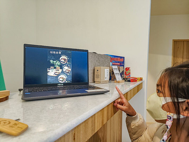先來到大廳Checkin,經過長途跋涉和玩了一個下午,小草、小花都累癱了;管家簡單的介紹營地的各個設施,日月潭、埔里以茶香聞名,左側販售著當地茶產與伴手禮;今天的晚餐是葉子祕境開伙,三個餐盒我們都各點了一份,這時是不是想到新竹慈濟路是不是也有一家葉子餐廳?因為就是同一個關係企業喔~