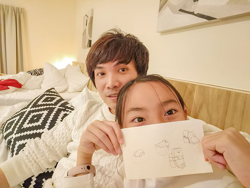 一早起床還好已經沒有下雨,打開門看到管家已經先幫我們準備好了早餐,有小孩喜歡的薯條、牛肉漢堡和奶茶,牛肉漢堡也是在入住的時候也有先詢問是否吃牛肉;Check Out 的時間是在11:00,吃完早餐後還有一點時間可以泡個咖啡然後躺在床上陪小草、小花們看著Netflix的蛋黃哥~然後出發桃米村的Cona’s妮娜巧克力城堡,感覺已經好久沒有這麼放鬆的時間了啊~~~