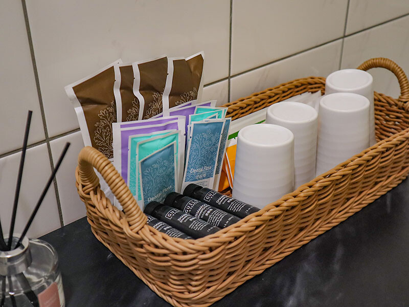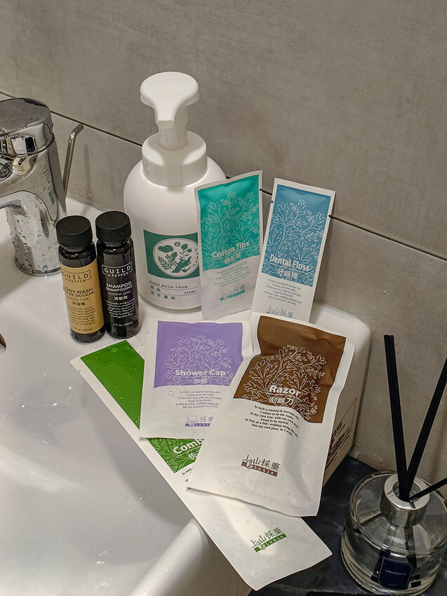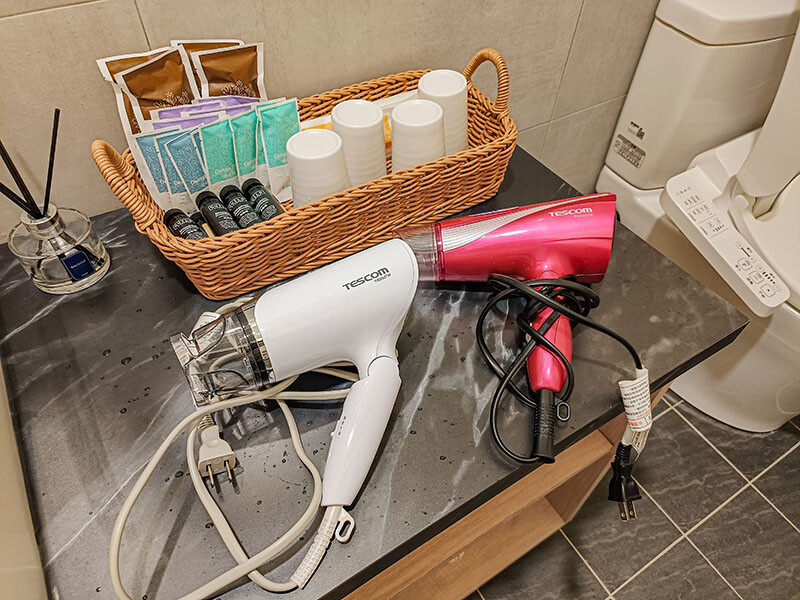 衛浴設備採乾溼分離,標配有TOTO的免治馬桶;牙刷、刮鬍刀等梳化用品使用的是上山採藥系列;出門會帶吹風機的朋友可以參考一下,房間配備和我用的是同等級喔,除非習慣用DYSON,否則就會像我一樣徒增行李重量 XD