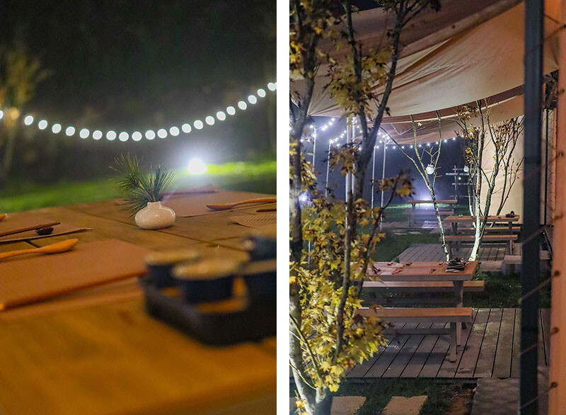 隨著夜晚的來臨,天幕上的燈串也亮了起來:就是這個光,才像在森林嘛~