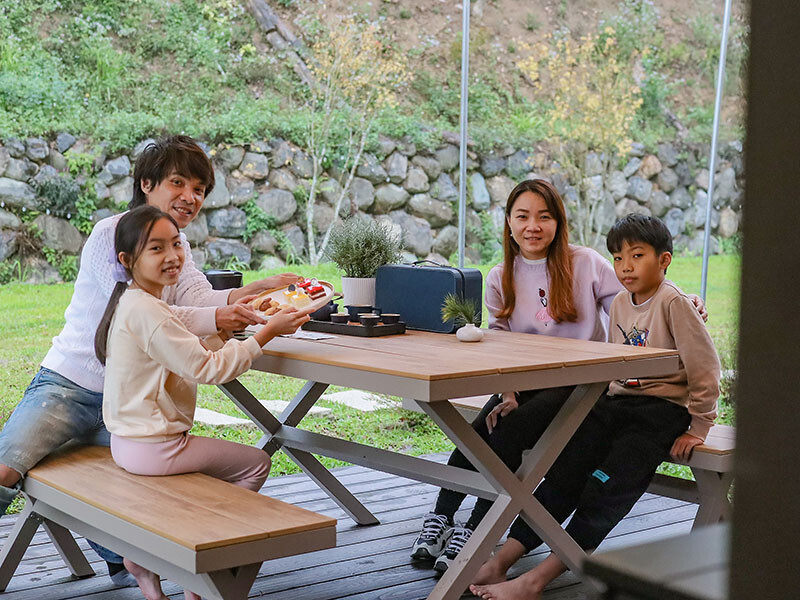 一泊二食 : 15:00 ~ 隔日11:00 / 下午茶+早餐 (晚餐可加購)