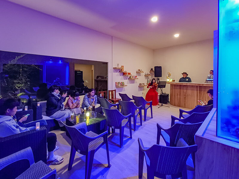 快來快來~把小孩都洗好澡安頓好,這可是大人的時間;如果沒有下雨,就會在停車場上來的天籟區有現場演奏,還記得Checkin發的飲料小卡嗎?可以找管家兌換飲品;可惜今天就下著雨,只能把活動移到大廳空間,還是可以享受難得的慵懶時光。