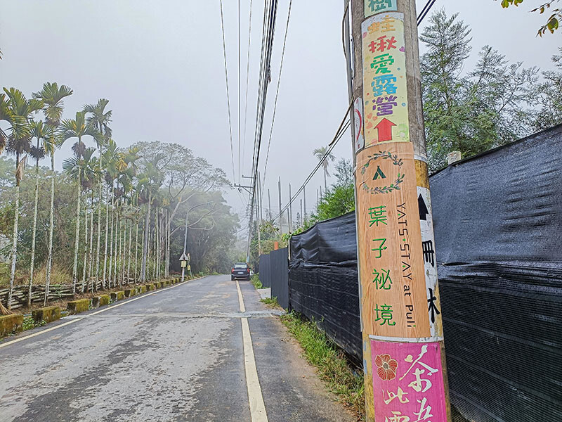這趟行程安排預計走訪幾個埔里景點,從人氣景點 鳥居喫茶食堂、紙教堂、Cona’s妮娜巧克力城堡、日月潭 湖の怪物 咖啡,還預計吃個山上山下、桑心合作社,最終都回到了桃米村,所以葉子祕境就非常合適;離開了紙教堂後,順著上山的路沿著路牌前行約10分鐘就可到達。