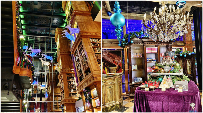 今年它們走樸素路線,少了往年的大紅大綠,不過挑高的天花板拍起來還是很有氣氛