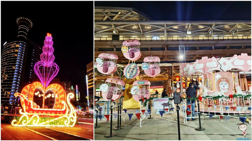 火車站前廣場的主燈是《心花朵朵》,旁邊還有適合親子的台中聖誕遊園嘉年華