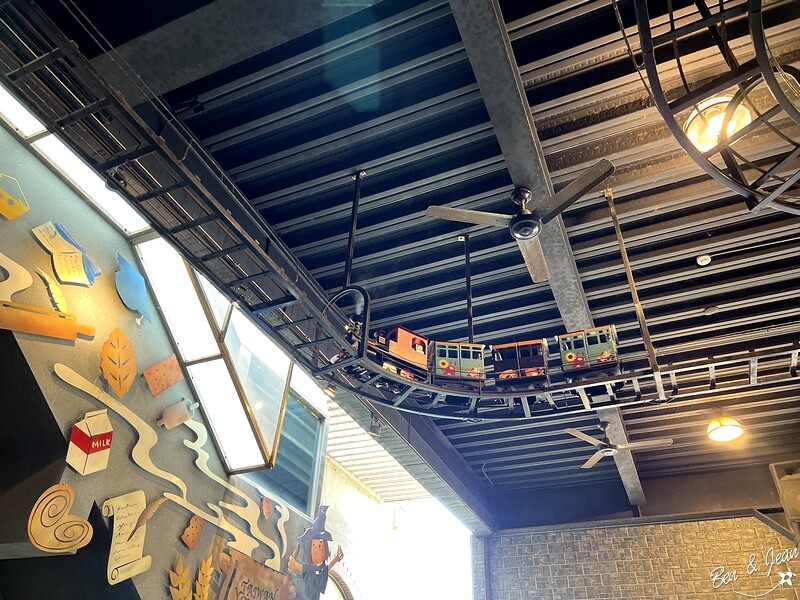 除了小火車很好拍,天花板上也有兩列蒸氣小火車在行駛!而且真的會冒著煙沿著軌道前進