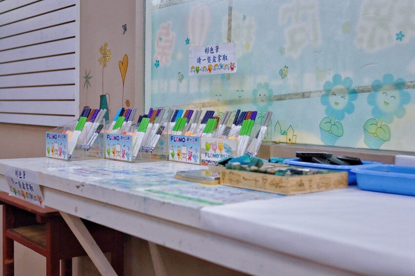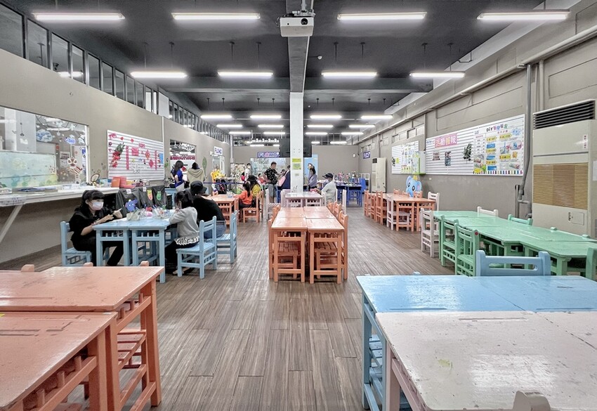 再來就是廠區規畫的DIY教室,內有不少的DIY創意課程,基本上價位分成了有50元與100元二種價位,有彩色筆DIY、橡皮擦、 筆盒、筆筒、手作橡皮擦製作等五種DIY活動,而我們的套票贈送的橡皮擦DIY,剛好蔬果姐妹兩可以一起體驗如何製作橡皮擦,這橡皮擦DIY的時間大約20~30分鐘不等,最後蔬果姐妹又回到DIY教室繼續彩繪她們的橡皮擦盒子。