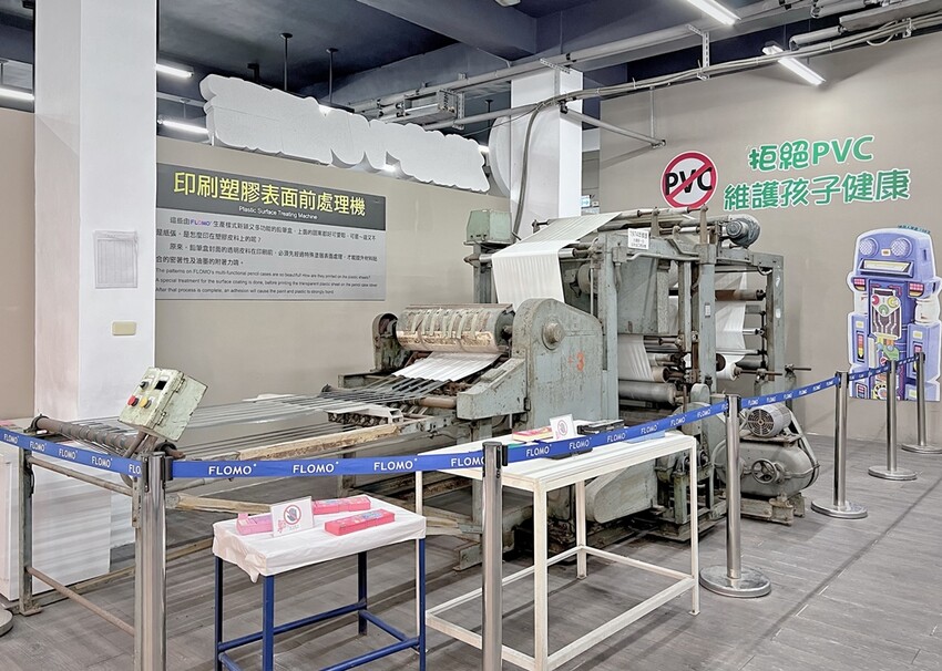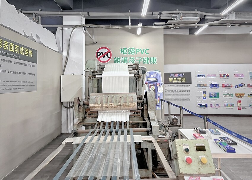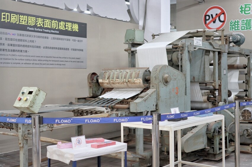 另外還有一面知識牆,巧妙地用遊戲方式標註了世界各地文具的起源,真的讓我們一家四口增進不少知識;一旁則也有環保無毒橡皮擦原料與製程的電視動畫,展覽區內還放著不少具有悠久年代與戰功彪炳的各式大型機具。